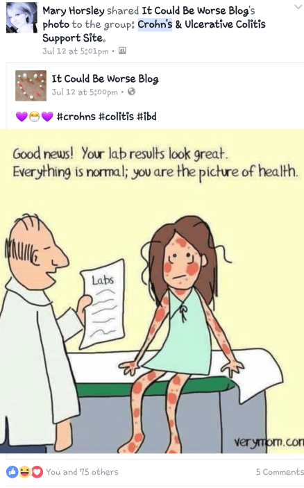I apologize for sharing images of how I view my Crohn’s disease from my own personal page, but some are from your many Facebook and online pages, too.